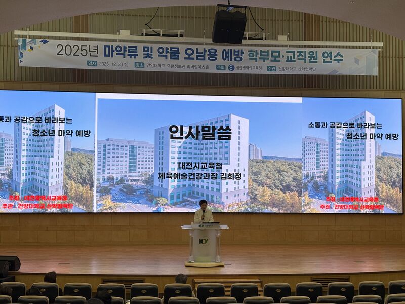대전시교육청은 12월 3일, 청소년의 마약류 및 약물 오남용 위험 증가에 대응하기 위해 학부모와 교사가 함께 참여하는 ‘2025년 마약류 및 약물 오남용 예방 학부모·교사 특강’을 운영했다고 밝혔다.